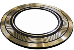 本實(shí)用新型將導(dǎo)電環(huán)由簡(jiǎn)單分體組裝變?yōu)椴捎铆h(huán)氧樹(shù)脂玻璃布復(fù)合管材與環(huán)氧玻璃布板加工后,通過(guò)環(huán)氧樹(shù)脂與固化劑的結(jié)合作用形成一個(gè)整體。將導(dǎo)電環(huán)鑲嵌其中,再加工成所需尺寸的獨(dú)有方式,具備將電源和各種信號(hào)在上下車(chē)間進(jìn)行不間斷的傳輸,且上下車(chē)之間有360度無(wú)限制旋轉(zhuǎn)的能力,特別是其中間位置為大口徑輸水管。本實(shí)用新型特點(diǎn)如下:1、高防護(hù)特性,可以達(dá)到潮氣對(duì)導(dǎo)電滑環(huán)無(wú)影響的標(biāo)準(zhǔn);2、高絕緣特性,因采用的材質(zhì)均為H級(jí)高壓絕緣材料,環(huán)間可以耐壓2500V1分鐘,遠(yuǎn)遠(yuǎn)高于車(chē)輛電器的工作電壓;3、大孔徑特性·,導(dǎo)電滑環(huán)的中間可以通行5英寸乃至更大孔徑的不銹鋼水管;