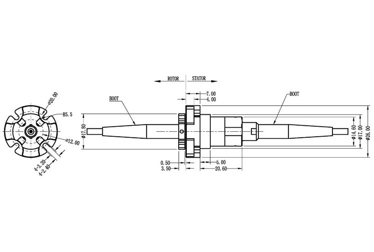 現(xiàn)今絕大多數(shù)的光纖旋轉(zhuǎn)關(guān)節(jié)(光纖滑環(huán))為共軸旋轉(zhuǎn)關(guān)節(jié),共軸型光纖旋轉(zhuǎn)關(guān)節(jié)的旋轉(zhuǎn)耦合器件位于中心,此類器件的特點是光器件的光軸與互連器件中心軸重合,這種結(jié)構(gòu)可以保證連接器具有簡單的光路,為制作旋轉(zhuǎn)關(guān)節(jié)提供較簡便的方法。