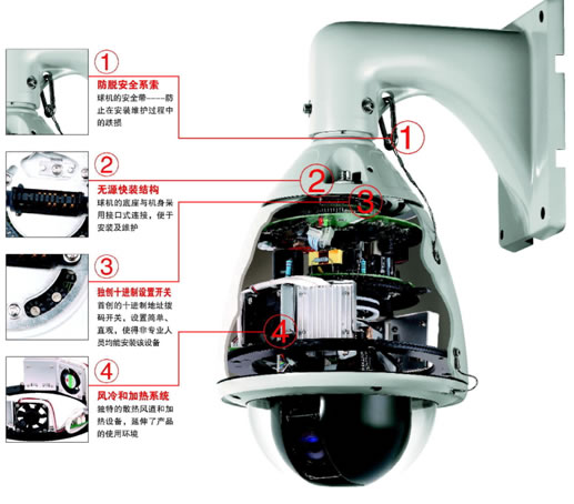 在安防監(jiān)控領(lǐng)域中,智能球型攝像機系統(tǒng)由于其能實現(xiàn)360°全范圍內(nèi)的無盲區(qū)監(jiān)控,通過預(yù)置位、軌跡掃描、看守位、花樣掃描、報警等實現(xiàn)更加智能監(jiān)控的智能球型攝像機系統(tǒng)在安防監(jiān)控領(lǐng)域得到了大范圍應(yīng)用。實現(xiàn)360°旋轉(zhuǎn)監(jiān)控及一些智能功能的實現(xiàn),必須通過