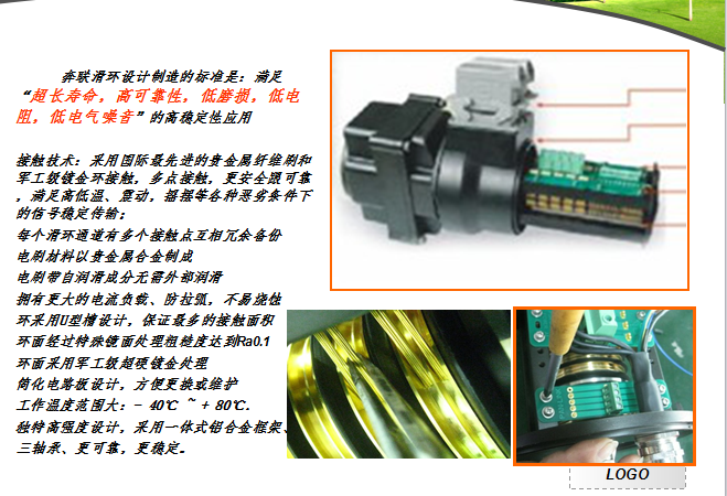 奔聯(lián)滑環(huán)的特點和優(yōu)勢,奔聯(lián)滑環(huán)設計制造的標準是:滿足“長壽命,高可靠性,低磨損”的高穩(wěn)定性應用我們滑環(huán)的一個獨特的特點: 能在無外界潤滑劑的情況下達到超長的壽命, 且使用過程中長達至少3年的維護周期. 較大的工作溫度范圍和濕度適應能力也是其特點之一. 多點貴金屬接觸的使用使得滑環(huán)的性能更加優(yōu)良, 特點更顯突出,避免了大電流時電弧的產生,性能遠遠超越傳統(tǒng)碳刷滑環(huán)和單線貴金屬刷結構。無需外界潤滑,長達至少3年的維護周期.采用國際最先進的貴金屬多點接觸技術多點接觸,冗余連接設計,更可靠低摩擦,低損耗.超長使用壽命的保證工作溫度范圍大:- 40℃ ~ + 80℃. 獨特外殼防護設計.防止外界污染